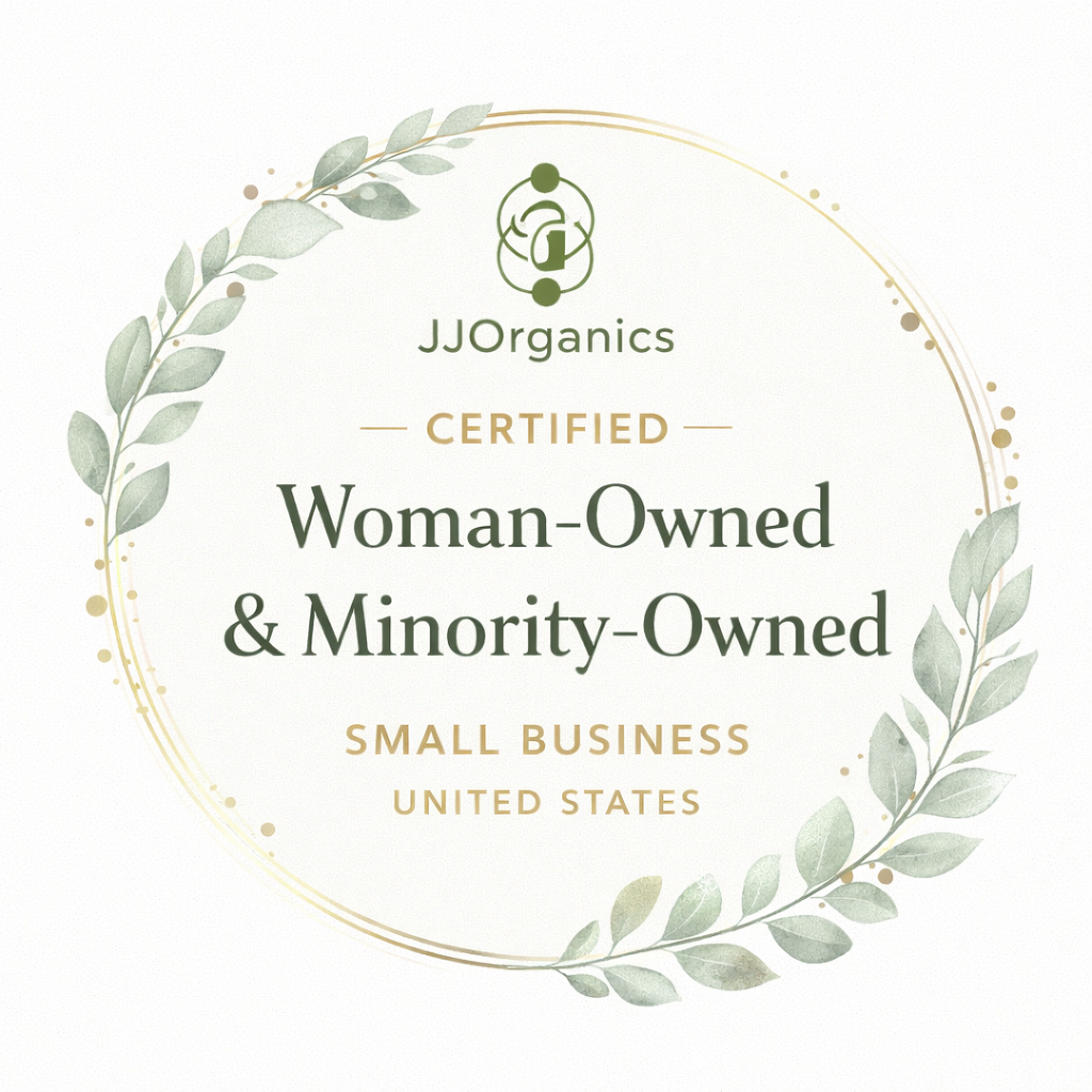 JJOrganics is proudly certified as a Woman-Owned and Minority-Owned Small Business in the United States.